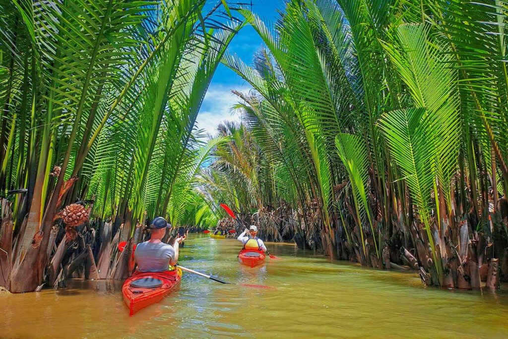 Discover a different side of Hoi An with this peaceful Hoi An kayaking tour. Paddle through the Ancient Town during golden hour, when the riverside houses glow in the late afternoon sun. Glide further along to the tranquil Cam Thanh mangrove forest, where nipa palms line the waterways and local life unfolds along the riverbanks. With small groups, friendly guides, and a relaxed pace, this short adventure is a perfect mix of scenery, culture, and calm exploration.