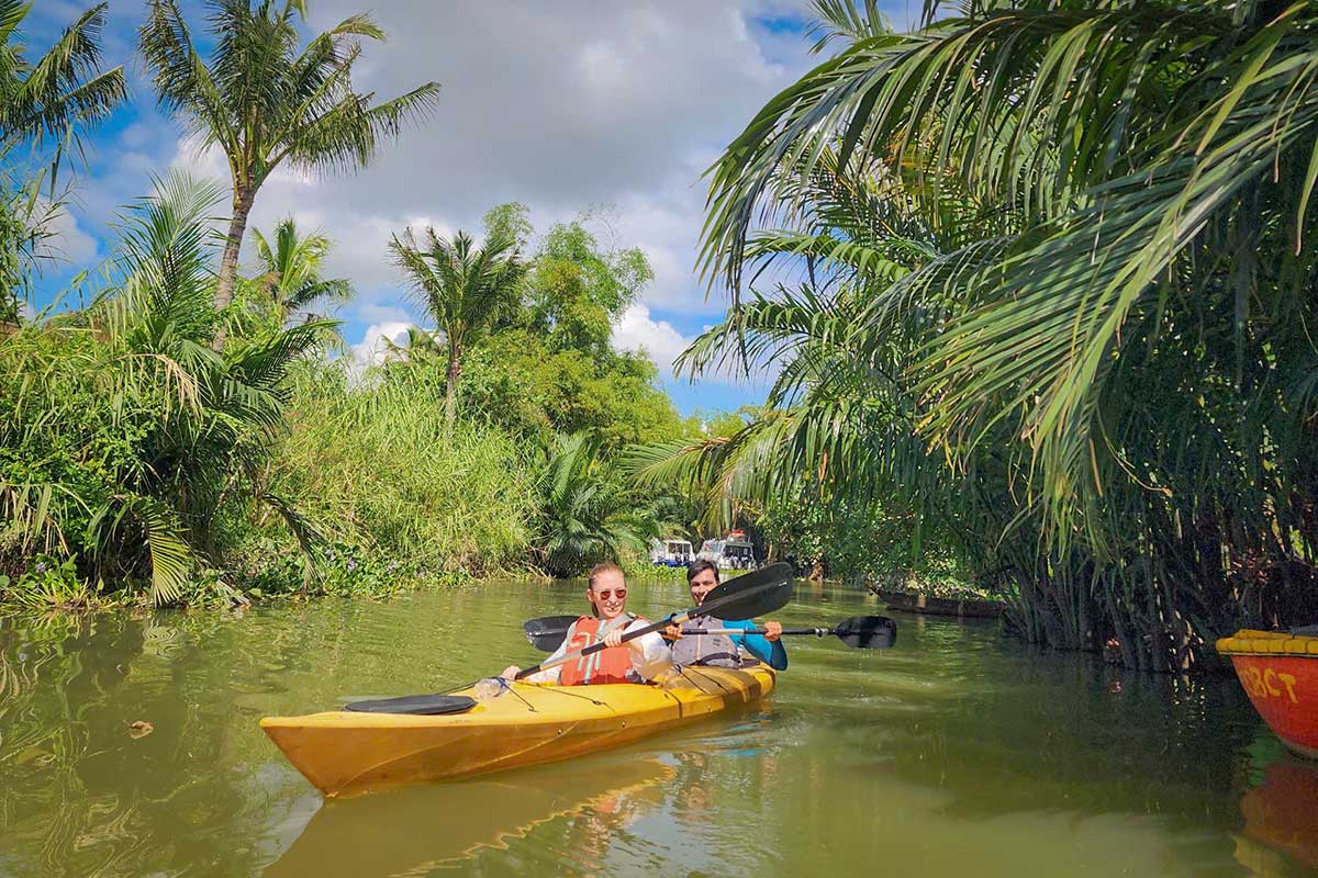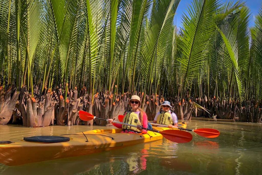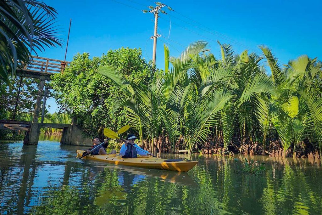 Discover the quieter side of Hoi An on a Cam Thanh kayak tour through the mangrove forest. Paddle your way past coconut palms, small waterways, and local fishing spots while getting a closer look at daily life along the river. This easy two-hour experience is suitable for beginners and even families with children. Whether you choose a kayak or stand-up paddleboard, it’s a relaxing and eco-friendly way to explore one of Hoi An’s most unique landscapes.