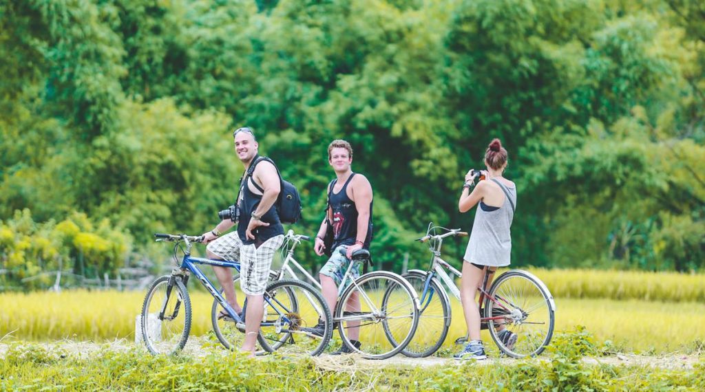 Discover nearby rice paddies and ethnic villages using provided bicycles.