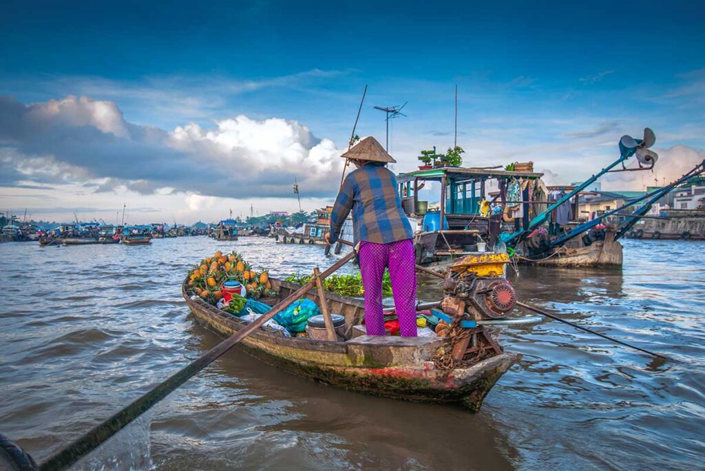 You’ll arrive around noon at a peaceful riverside homestay near Can Tho. A home-cooked lunch is served right by the water, with boats drifting by — a calm and authentic start to your time in the Delta.
