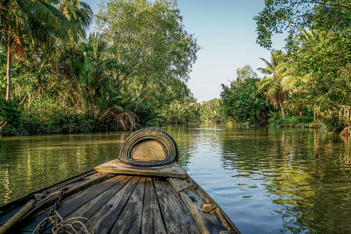 Leave the island behind and drift into the rhythms of the Mekong Delta, where boats replace motorbikes and mornings begin on the water. From Phu Quoc, travel overland and by ferry to a quiet homestay near Can Tho, your base for exploring canals, floating markets, and village backroads. Eat breakfast on a boat, bike past rice paddies, and watch locals craft fresh rice noodles. It’s not just a transfer to Ho Chi Minh City — it’s a meaningful stop along the way.
