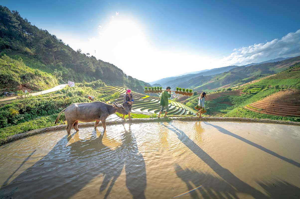 Continue hiking through a bamboo forest to Mang Mu village, where you’ll visit a local house and try your hand at batik fabric drawing — an art form passed down through Hmong generations. From there, trek to Mong Ngua village, known for its horse-shaped rice terraces and spectacular sunset views. The trail here is steeper, but the payoff is worth it.