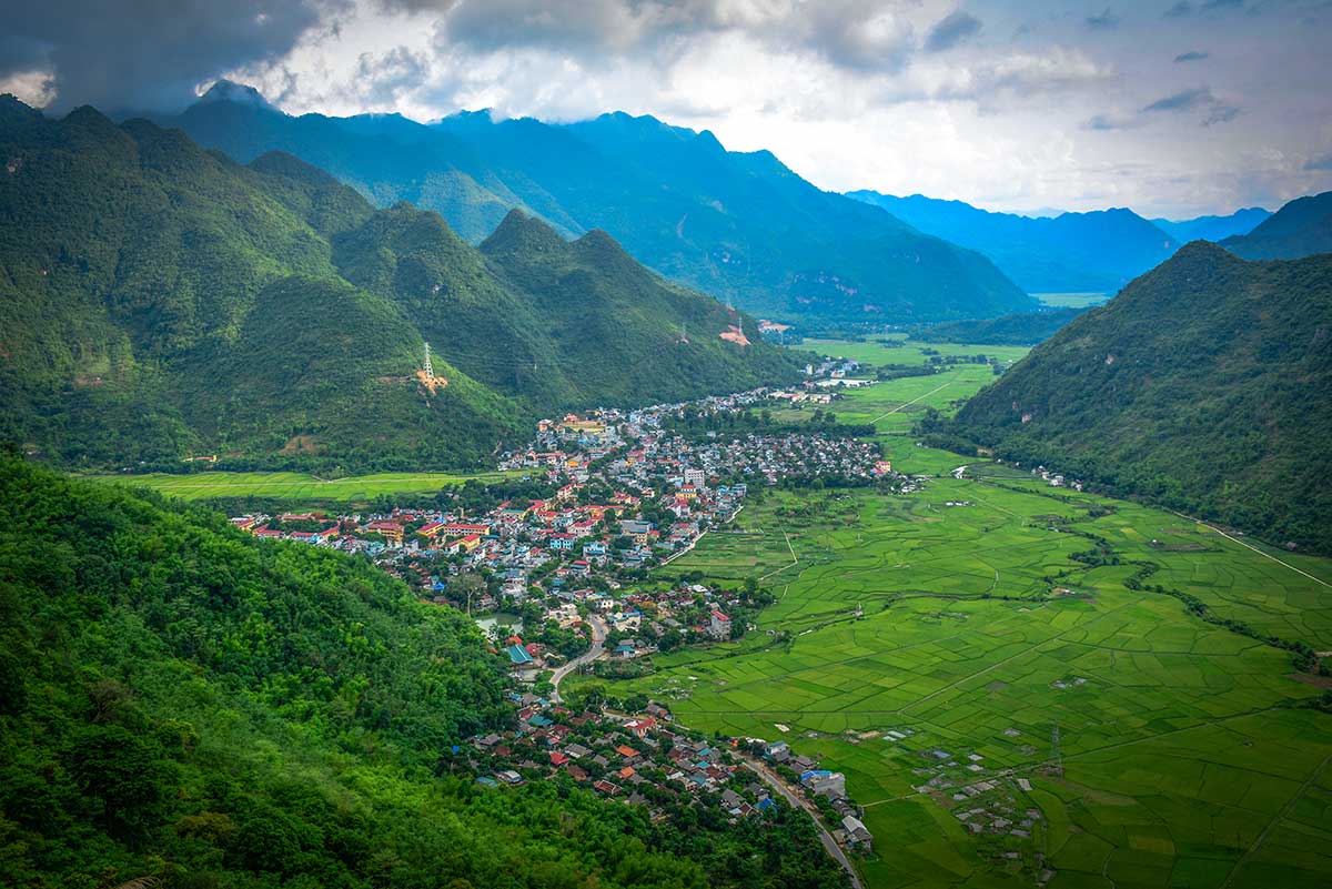Have an early breakfast and hop in the van for a scenic ride deeper into Pu Luong. If it’s Thursday or Sunday, you'll stop by the vibrant Pho Doan market to see how ethnic communities trade produce, clothes, and tools.