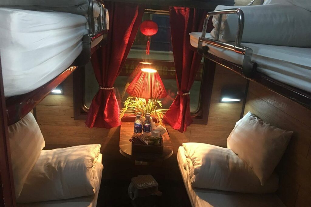 You travel overnight to Lao Cai on the Dream Train Express, a comfortable tourist sleeper train. You’ll stay in a shared 4-berth cabin, with your own bed, clean bedding, air-conditioning, and space to store luggage under the berth. The ride can be a bit bumpy and noisy at times, but it’s a classic Vietnam travel experience and a relaxed way to cover long distance while you sleep.