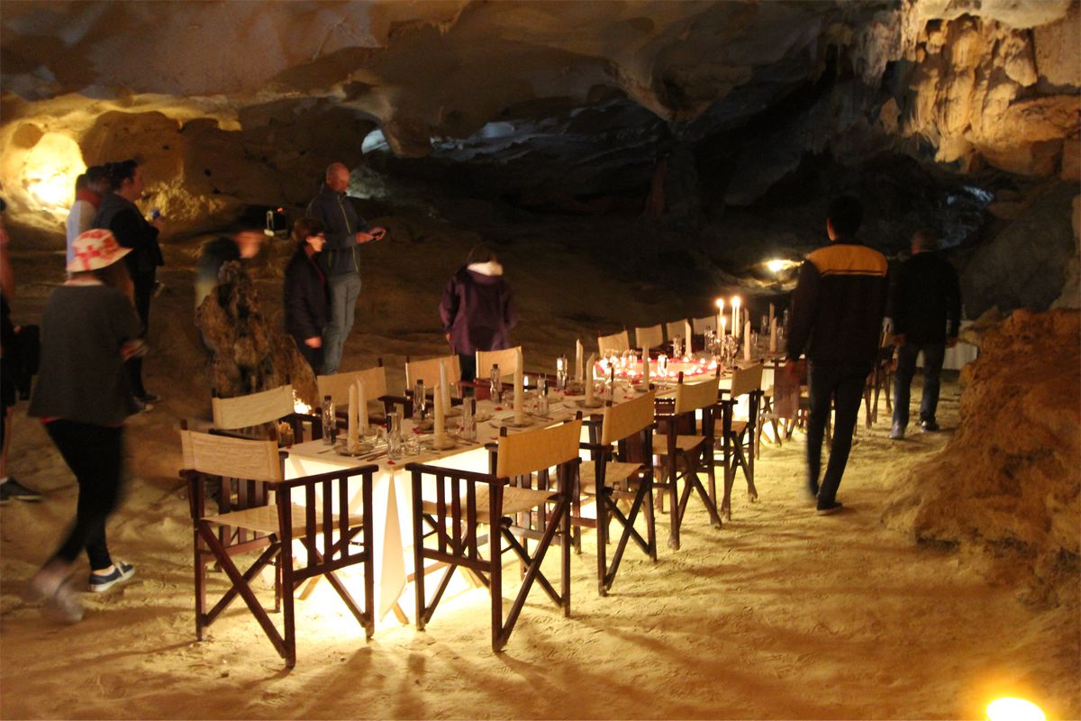 The Renea Boutique Cruise offers a cozy experience aboard a traditional wooden boat that combines Vietnamese style with modern comfort. Cabins feature large windows with stunning views of the bay, private bathrooms, and thoughtful details that create a warm, relaxed atmosphere. On deck, you can soak up the sun, enjoy Vietnamese dishes in the stylish dining room, or sip a drink while admiring the peaceful bay views. With its family-like atmosphere, this cruise is especially well-suited for small groups who value both comfort and authenticity.