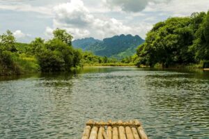Drift along the river on a traditional bamboo raft. It’s a peaceful way to see the countryside and observe farmers working along the riverbanks.
