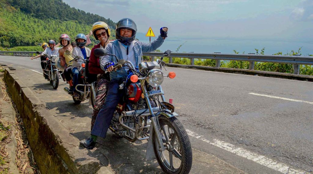 Yes, sitting on the back of a licensed motorbike guide is perfectly legal. There is a maximum of 2 people per motorcycle, so if you want to make an easy rider tour in Vietnam with 3 people, you need 3 different easy riders.